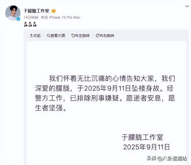 9月11日,于朦胧的热搜词条直接上了十几个,在众人忐忑不安希望他没出事的乞求声中,下午六点多工作室出了最终结论,出事的真的是他。