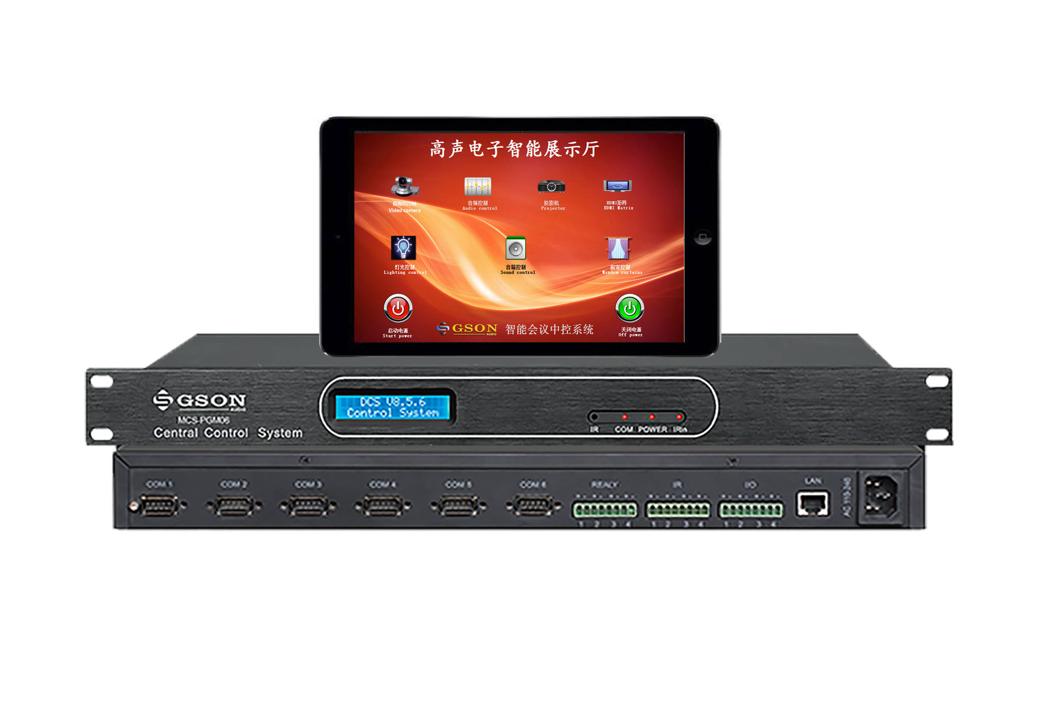 以往传统的中控主机只是单点控制的控制主机,只对一个会议室、指挥室或者是一个狭窄范围内的可控设备进行控制,但对于远距离的两个控制点来说是没有办法进行互相控制或者是级联控制,GSON高声电子最新自主研发的新一代中控主机MCS-PGM06则解决了这个难题。
