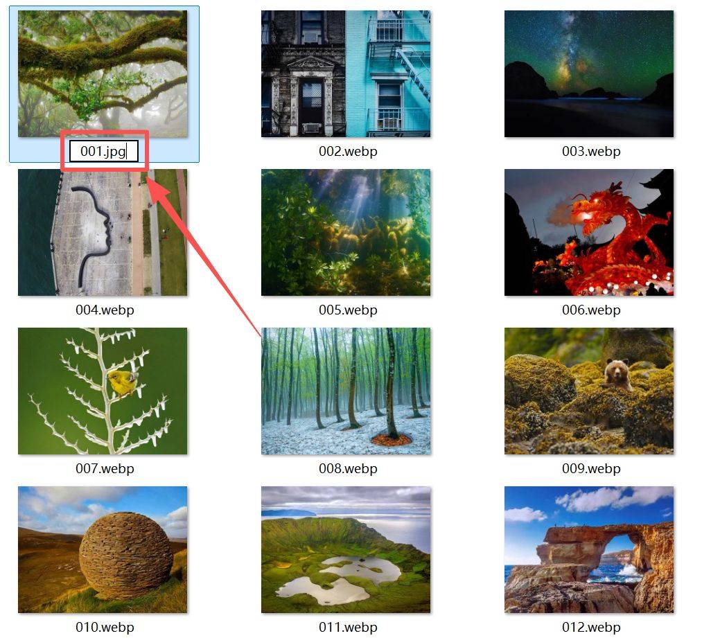 右键webp文件选择重命名,然后将文件的扩展名webp手动修改成jpg就可以了。